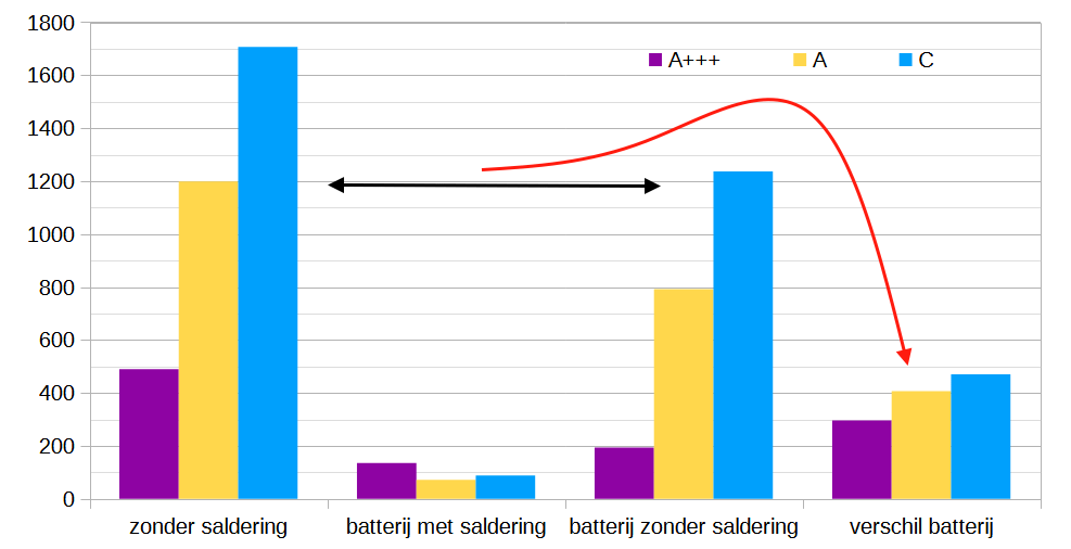 • een 10 kWh batterij kost dus ca. € 6000 - 7000